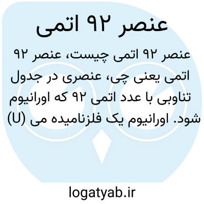 عنصری در جدول تناوبی با عدد اتمی ۹۲ که اورانیوم (U) نامیده می‌شود. اورانیوم یک فلز سنگین است که در انرژی هسته‌ای و ساخت تسلیحات هسته‌ای استفاده می‌شود.
