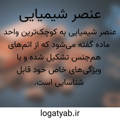 عنصر شیمیایی به کوچک‌ترین واحد ماده گفته می‌شود که از اتم‌های هم‌جنس تشکیل شده و با ویژگی‌های خاص خود قابل شناسایی است. هر عنصر در جدول تناوبی جایگاه مشخصی دارد و بر اساس عدد اتمی، یعنی تعداد پروتون‌های موجود در هسته، از دیگر عناصر متمایز می‌شود. برای نمونه، هیدروژن با عدد اتمی ۱ ساده‌ترین عنصر و اورانیوم با عدد اتمی ۹۲ یکی از سنگین‌ترین عناصر پایدار شناخته شده است.