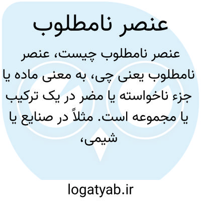 به معنی ماده یا جزء ناخواسته یا مضر در یک ترکیب یا مجموعه است. مثلاً در صنایع یا شیمی، عنصری که کیفیت محصول را کاهش دهد یا در طبیعت عاملی ناخوشایند باشد، «عنصر نامطلوب» نامیده می‌شود.