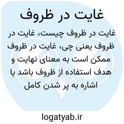 غایت در ظروف ممکن است به معنای نهایت و هدف استفاده از ظروف باشد یا اشاره به پر شدن کامل ظروف تا دورن یا لبه دارد. در ادبیات و هنر، غایت در ظروف می‌تواند استعاره‌ای برای کمال، پر بودن یا رسیدن به نقطه نهایی باشد.