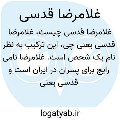 این ترکیب به نظر نام یک شخص است. غلامرضا نامی رایج برای پسران در ایران است و قدسی یعنی مرتبط با قدس یا مقدس. در صورت اشاره به شخص خاص، این دو کلمه یک اسم و نام خانوادگی را تشکیل میدهند.