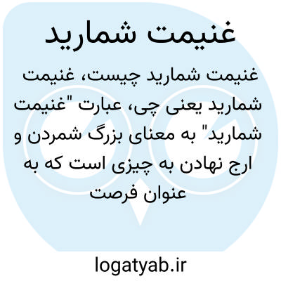 عبارت "غنیمت شمارید" به معنای بزرگ شمردن و ارج نهادن به چیزی است که به عنوان فرصت یا موهبت به دست آمده است. معمولاً در جملاتی به کار می‌رود که تأکید بر ارزشمند بودن زمان، امکانات یا موقعیت‌هایی دارد که نباید از دست بروند.