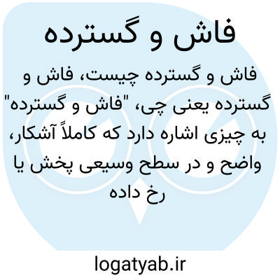 "فاش و گسترده" به چیزی اشاره دارد که کاملاً آشکار، واضح و در سطح وسیعی پخش یا رخ داده است؛ چیزی که پنهان نیست و همگان از آن اطلاع دارند یا آن را مشاهده می‌کنند.