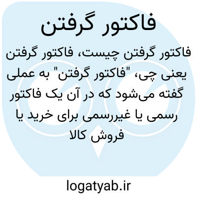 "فاکتور گرفتن" به عملی گفته می‌شود که در آن یک فاکتور رسمی یا غیررسمی برای خرید یا فروش کالا یا خدمات صادر می‌شود. فاکتور سندی است که مشخصات معامله را به صورت دقیق ثبت می‌کند و برای مبادلات تجاری، حسابداری، و پرداخت مالیات اهمیت دارد. فاکتور گرفتن می‌تواند به صورت دستی یا الکترونیکی انجام شود و معمولاً توسط فروشنده یا ارائه‌دهنده خدمات صادر می‌گردد.