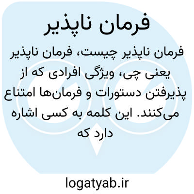 ویژگی افرادی که از پذیرفتن دستورات و فرمانها امتناع میکنند. این کلمه به کسی اشاره دارد که سرپیچی میکند، نافرمانی میکند یا تابع قوانین و دستورات نیست و مستقل عمل میکند.