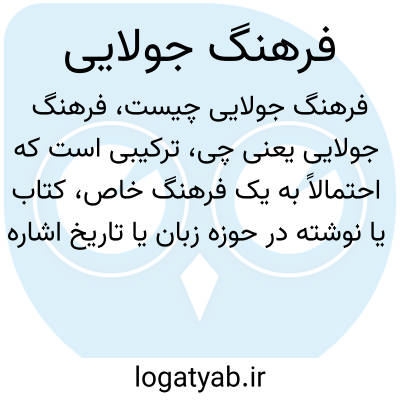 ترکیبی است که احتمالاً به یک فرهنگ خاص، کتاب یا نوشته در حوزه زبان یا تاریخ اشاره دارد. کلمه "فرهنگ" در فارسی به معنای دایره‌المعارف، لغت‌نامه، یا مجموعه‌ای از دانش‌ها یا آداب و رسوم است و "جولایی" به احتمال زیاد نام یک نویسنده یا عنوان خاصی است.