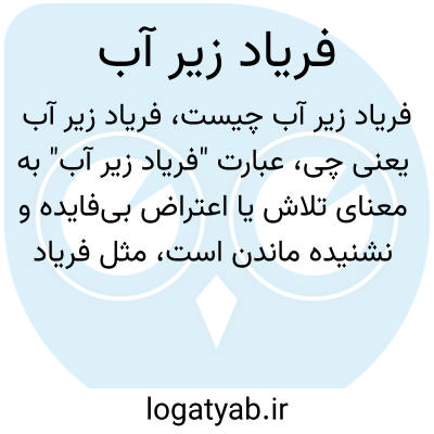 عبارت "فریاد زیر آب" به معنای تلاش یا اعتراض بی‌فایده و نشنیده ماندن است، مثل فریاد زدن تحت آب که صوت قابل شنیدن نیست. استعاره‌ای برای بیان ناکامی در رساندن پیام یا درخواست به کسی است.
