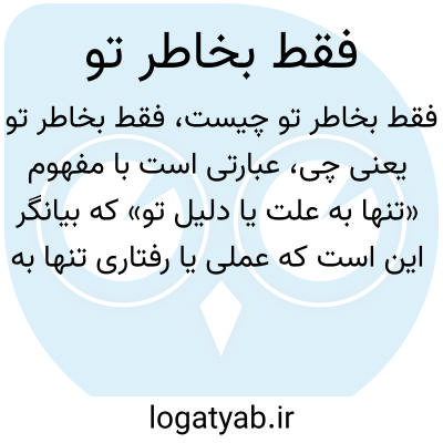 عبارتی است با مفهوم «تنها به علت یا دلیل تو» که بیانگر این است که عملی یا رفتاری تنها به خاطر وجود یا اهمیت شخص مخاطب انجام می‌شود. این عبارت در متون عاشقانه و عاطفی بسیار رایج است و ممکن است نشان‌دهنده محبت و توجه ویژه نسبت به شخص مقابل باشد.