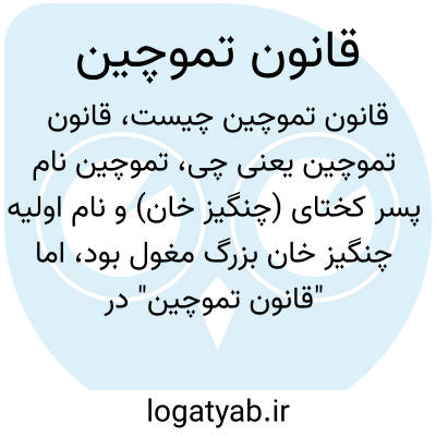 تموچین نام پسر کختای (چنگیز خان) و نام اولیه چنگیز خان بزرگ مغول بود، اما "قانون تموچین" در منابع تاریخی مشخص به عنوان قانون خاصی شناخته نشده است. در صورتی که منظور قوانین مربوط به فرمانروایی یا دستورهای تموچین باشد، اشاره به قوانین حکومتی دوران چنگیز خان است که نظم و نظم اجتماعی و نظامی را تعیین می‌کرد.