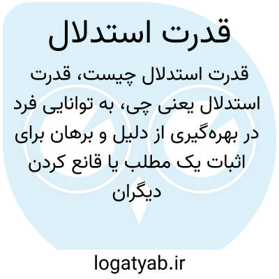 به توانایی فرد در بهرهگیری از دلیل و برهان برای اثبات یک مطلب یا قانع کردن دیگران گفته میشود. قدرت استدلال یکی از مهارتهای مهم در منطق، فلسفه و گفتوگوهای منطقی است.