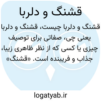صفاتی برای توصیف چیزی یا کسی که از نظر ظاهری زیبا، جذاب و فریبنده است. «قشنگ» به معنی زیبا و خوشمنظر و «دلربا» به معنی کسی یا چیزی است که دل دیگران را میرباید و جذب میکند.