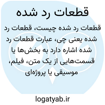 عبارت قطعات رد شده اشاره دارد به بخش‌ها یا قسمت‌هایی از یک متن، فیلم، موسیقی یا پروژه‌ای که به دلیل کیفیت پایین، ناسازگاری یا عدم تطابق با موضوع اصلی توسط تولیدکننده یا داوران قبول نشده و حذف گردیده‌اند.