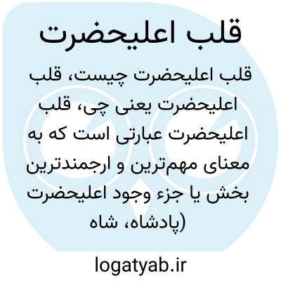 قلب اعلیحضرت عبارتی است که به معنای مهم‌ترین و ارجمندترین بخش یا جزء وجود اعلیحضرت (پادشاه، شاه یا شخصیت بزرگ) اشاره دارد و در متون تاریخی یا ادبی به عنوان تمجید و تأکید به مقام والای فرد ذکر می‌شود.