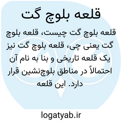 قلعه بلوچ گت نیز یک قلعه تاریخی و بنا به نام آن احتمالاً در مناطق بلوچ‌نشین قرار دارد. این قلعه بیانگر فرهنگ، تاریخ و شرایط دفاعی مردم منطقه در گذشته است.