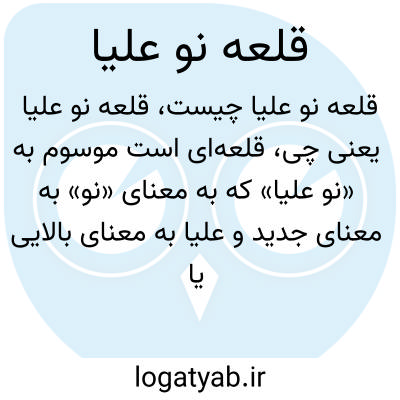 قلعه‌ای است موسوم به «نو علیا» که به معنای «نو» به معنای جدید و علیا به معنای بالایی یا بالاتر است. این قلعه ممکن است در منطقه‌ای به نام نو علیا ساخته شده باشد یا نام محلی آن این باشد.