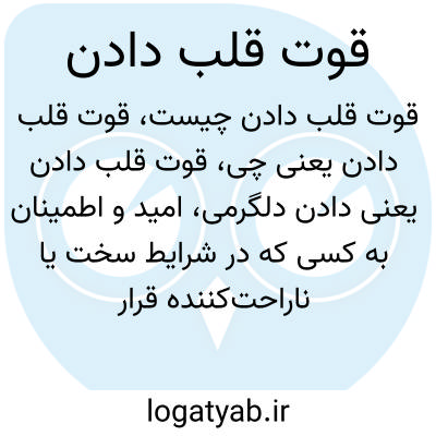 قوت قلب دادن یعنی دادن دلگرمی، امید و اطمینان به کسی که در شرایط سخت یا ناراحت‌کننده قرار دارد. این عمل به منظور روحیه‌بخشی و تقویت روانی فرد انجام می‌شود تا احساس تنهایی و ناامیدی کاهش یابد و او شجاعت ادامه راه را پیدا کند.