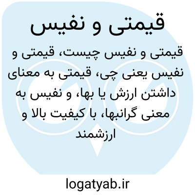 قیمتی به معنای داشتن ارزش یا بها، و نفیس به معنی گرانبها، با کیفیت بالا و ارزشمند است. ترکیب «قیمتی و نفیس» به اشیاء یا کالاهایی اشاره دارد که از نظر قیمت و کیفیت هر دو ممتاز و ویژه میباشند، مانند جواهرات یا آثار هنری.