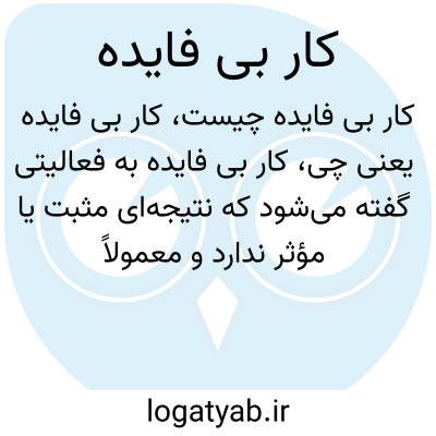 کار بی فایده به فعالیتی گفته می‌شود که نتیجه‌ای مثبت یا مؤثر ندارد و معمولاً باعث اتلاف وقت و انرژی می‌شود. این اصطلاح برای توصیف تلاش‌هایی به کار می‌رود که به هدف مشخصی نمی‌رسند یا ارزش انجام دادن ندارند.