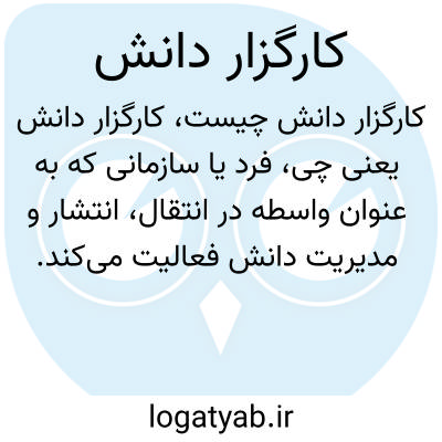 فرد یا سازمانی که به عنوان واسطه در انتقال، انتشار و مدیریت دانش فعالیت می‌کند. کارگزار دانش نقش پل ارتباطی بین منابع دانش و افرادی دارد که به این دانش نیازمندند.