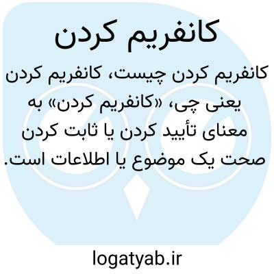 «کانفریم کردن» به معنای تأیید کردن یا ثابت کردن صحت یک موضوع یا اطلاعات است. این واژه به صورت تلفیقی از زبان انگلیسی و فارسی به کار می‌رود و معمولاً در مکالمات غیررسمی برای بیان تأیید رسمی یا نهایی به کار می‌رود.