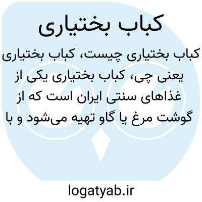 کباب بختیاری یکی از غذاهای سنتی ایران است که از گوشت مرغ یا گاو تهیه می‌شود و با چاشنی‌ها و ادویه‌های مخصوص طبخ می‌شود. این کباب معمولاً به صورت سیخ‌های چوبی آماده شده و در بین ایرانیان محبوبیت زیادی دارد، به خصوص در مناطق غربی کشور که این غذا ریشه دارد.