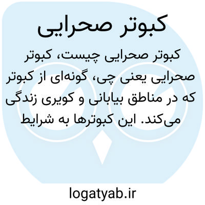 گونهای از کبوتر که در مناطق بیابانی و کویری زندگی میکند. این کبوترها به شرایط سخت آب و هوایی سازگار شدهاند و معمولاً پرهای محکم و توانایی تامین آب از منابع کم را دارند.