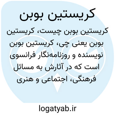 کریستین بوبن نویسنده و روزنامه‌نگار فرانسوی است که در آثارش به مسائل فرهنگی، اجتماعی و هنری می‌پردازد و به خاطر قلم شاعرانه و تحلیل عمیق موضوعات مورد توجه قرار گرفته است.
