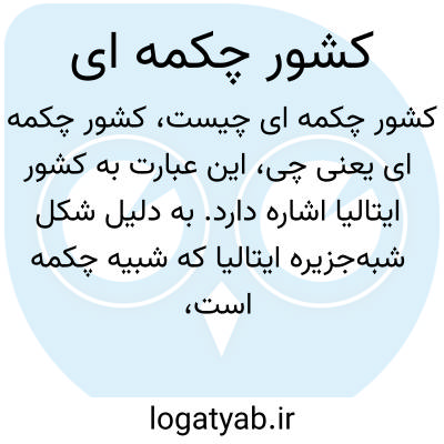 این عبارت به کشور ایتالیا اشاره دارد. به دلیل شکل شبهجزیره ایتالیا که شبیه چکمه است، اغلب از واژه "کشور چکمهای" برای اشاره به ایتالیا استفاده میشود.