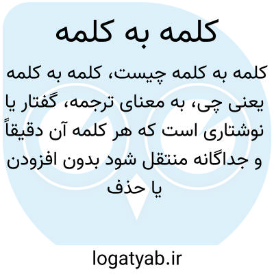 به معنای ترجمه، گفتار یا نوشتاری است که هر کلمه آن دقیقاً و جداگانه منتقل شود بدون افزودن یا حذف محتوا. «کلمه به کلمه» معمولاً در بحث ترجمه یا شرح متون به کار میرود.