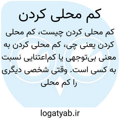 کم محلی کردن به معنی بیتوجهی یا کماعتنایی نسبت به کسی است. وقتی شخصی دیگری را کم محلی میکند، نسبت به او بیاحترامی میکند یا محبت و احترام لازم را نشان نمیدهد، به گونهای که طرف مقابل احساس بیاهمیتی کند.
