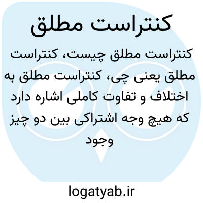 کنتراست مطلق به اختلاف و تفاوت کاملی اشاره دارد که هیچ وجه اشتراکی بین دو چیز وجود ندارد. به بیان ساده، این مفهوم بیانگر تضادی شدید و کامل است که هیچ نقطه مشترکی بین دو طرف وجود ندارد.