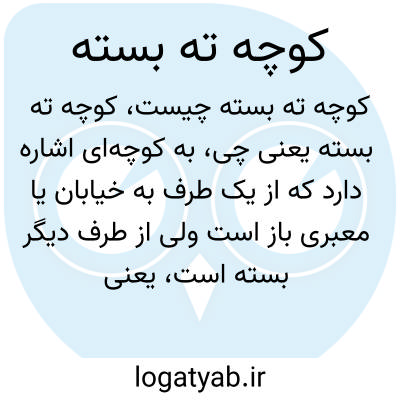 به کوچه‌ای اشاره دارد که از یک طرف به خیابان یا معبری باز است ولی از طرف دیگر بسته است، یعنی راه خروج یا دسترسی دیگری ندارد. چنین کوچه‌هایی معمولاً محل‌های آرام یا خلوتی هستند و به صورت انتهایی بسته به نظر می‌رسند.