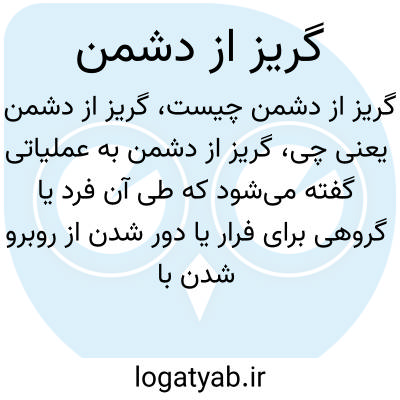 گریز از دشمن به عملیاتی گفته می‌شود که طی آن فرد یا گروهی برای فرار یا دور شدن از روبرو شدن با نیروی دشمن اقدام می‌کنند. این عمل ممکن است به دلایل امنیتی، تاکتیکی یا حفظ جان انجام شود و بخشی از استراتژی‌های نظامی و اجتماعی در موقعیت‌های بحران است.
