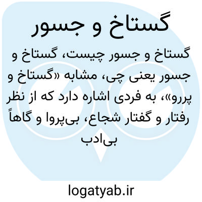 مشابه «گستاخ و پررو»، به فردی اشاره دارد که از نظر رفتار و گفتار شجاع، بی‌پروا و گاهاً بی‌ادب است، که ممکن است در مواجهه با موانع و مشکلات با اعتماد به نفس زیاد عمل کند.