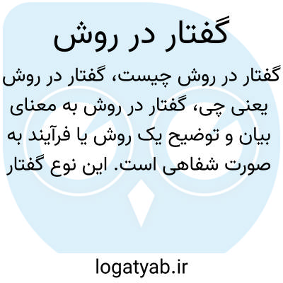 گفتار در روش به معنای بیان و توضیح یک روش یا فرآیند به صورت شفاهی است. این نوع گفتار معمولا در مواقعی کاربرد دارد که لازم است کسی روش انجام کاری، یک تکنیک یا مراحل یک پروژه را به دیگران توضیح دهد و آنها را راهنمایی کند تا به درستی اجرا شود.