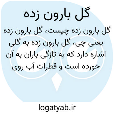 گل بارون زده به گلی اشاره دارد که به تازگی باران به آن خورده است و قطرات آب روی گلبرگ‌های آن دیده می‌شود. این عبارت معمولاً در توصیف صحنه‌های زیبا و دلنشین طبیعی به کار می‌رود و تصویری از طراوت و تازگی را منتقل می‌کند.