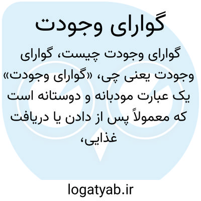 «گوارای وجودت» یک عبارت مودبانه و دوستانه است که معمولاً پس از دادن یا دریافت غذایی، نوشیدنی یا خدمت به کار می‌رود و به معنای آرزوی خوشی، سلامتی و رضایت برای فرد دیگری است. این عبارت بیان محبت و احترام است.