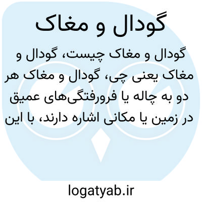 گودال و مغاک هر دو به چاله یا فرورفتگیهای عمیق در زمین یا مکانی اشاره دارند، با این تفاوت که «مغاک» بار معنایی تعبیری و اغلب نمادین دارد که به عمق بسیار زیاد و گاهی به دنیای زیرین یا جهنم اشاره میکند.