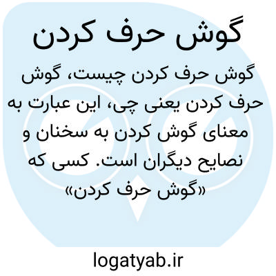 این عبارت به معنای گوش کردن به سخنان و نصایح دیگران است. کسی که «گوش حرف کردن» می‌کند، به خوبی به گفته‌ها و توصیه‌های افراد توجه می‌کند و معمولاً رفتاری توأم با احترام و دقت دارد.