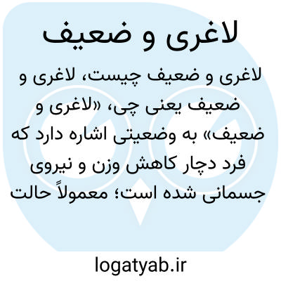 «لاغری و ضعیف» به وضعیتی اشاره دارد که فرد دچار کاهش وزن و نیروی جسمانی شده است؛ معمولاً حالت ناپسندیدهای است که ممکن است ناشی از بیماری، سوءتغذیه یا ضعف جسمانی باشد.