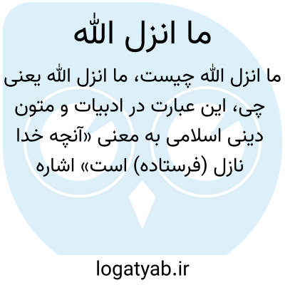 این عبارت در ادبیات و متون دینی اسلامی به معنی «آنچه خدا نازل (فرستاده) است» اشاره دارد، معمولاً به قرآن کریم برمیگردد. بنابراین، "ما انزل الله" به وحی الهی یا مفاهیم الهی بیان شده توسط خداوند اشاره دارد و در متون مذهبی بسیار مهم است.