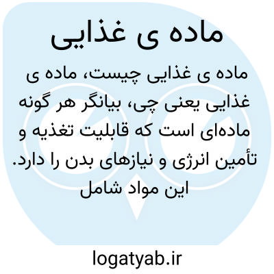 بیانگر هر گونه ماده‌ای است که قابلیت تغذیه و تأمین انرژی و نیازهای بدن را دارد. این مواد شامل پروتئین‌ها، چربی‌ها، کربوهیدرات‌ها، ویتامین‌ها و مواد معدنی هستند که برای زنده ماندن و سلامت بدن ضروری‌اند.