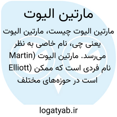 نام خاصی به نظر می‌رسد. مارتین الیوت (Martin Elliott) نام فردی است که ممکن است در حوزه‌های مختلف علمی، ورزشی یا هنری شناخته شده باشد. بدون اطلاعات بیشتر، معنی خاصی ندارد.
