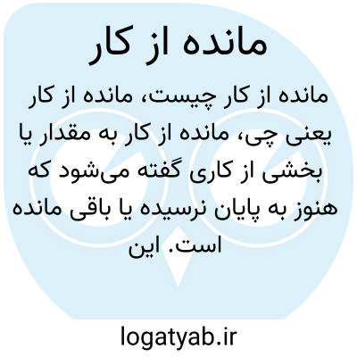 مانده از کار به مقدار یا بخشی از کاری گفته میشود که هنوز به پایان نرسیده یا باقی مانده است. این اصطلاح در مسائل کاری، حسابداری و مدیریت پروژهها کاربرد دارد.