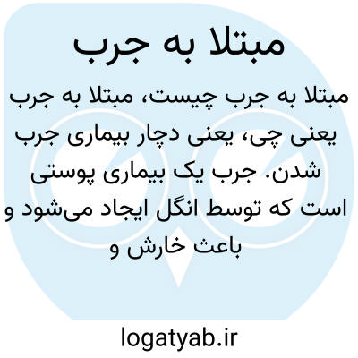 یعنی دچار بیماری جرب شدن. جرب یک بیماری پوستی است که توسط انگل ایجاد می‌شود و باعث خارش و ایجاد ضایعات روی پوست می‌شود. «مبتلا به جرب» یعنی شخص یا حیوانی به این بیماری دچار شده است.
