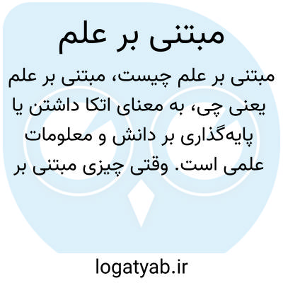 به معنای اتکا داشتن یا پایه‌گذاری بر دانش و معلومات علمی است. وقتی چیزی مبتنی بر علم است یعنی بر اساس داده‌ها، آزمایش‌ها و دانش موثق و قابل استناد شکل گرفته است.