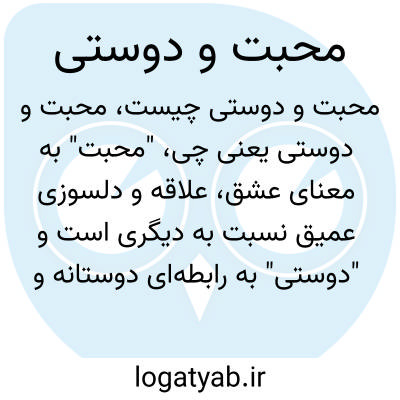 "محبت" به معنای عشق، علاقه و دلسوزی عمیق نسبت به دیگری است و "دوستی" به رابطه‌ای دوستانه و صمیمانه بین افراد اشاره دارد. محبت و دوستی از ارزش‌های انسانی و پایه‌های ارتباطات مثبت اجتماعی هستند که باعث ایجاد حس امنیت، همدلی و رضایت روانی می‌شوند.