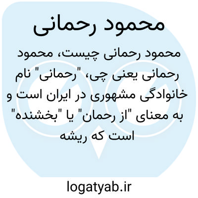 "رحمانی" نام خانوادگی مشهوری در ایران است و به معنای "از رحمان" یا "بخشنده" است که ریشه در زبان عربی دارد. این نام معمولاً به افراد مسلمان گویند.