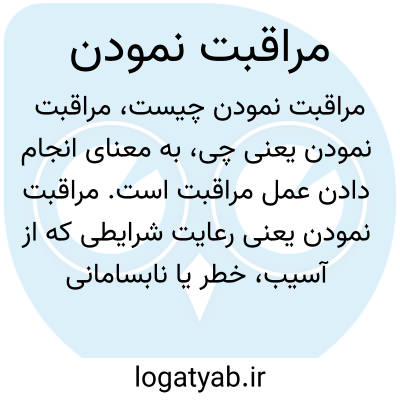 به معنای انجام دادن عمل مراقبت است. مراقبت نمودن یعنی رعایت شرایطی که از آسیب، خطر یا نابسامانی جلوگیری کند و به حفظ سلامت یا کیفیت چیز یا فردی کمک نماید.