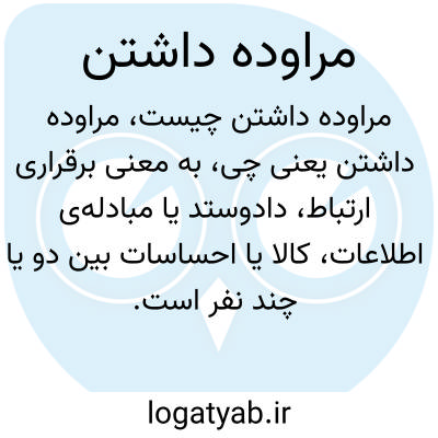 به معنی برقراری ارتباط، دادوستد یا مبادله‌ی اطلاعات، کالا یا احساسات بین دو یا چند نفر است. مراوده داشتن نوعی رابطه متقابل یا تعامل اجتماعی یا تجاری را نشان می‌دهد.